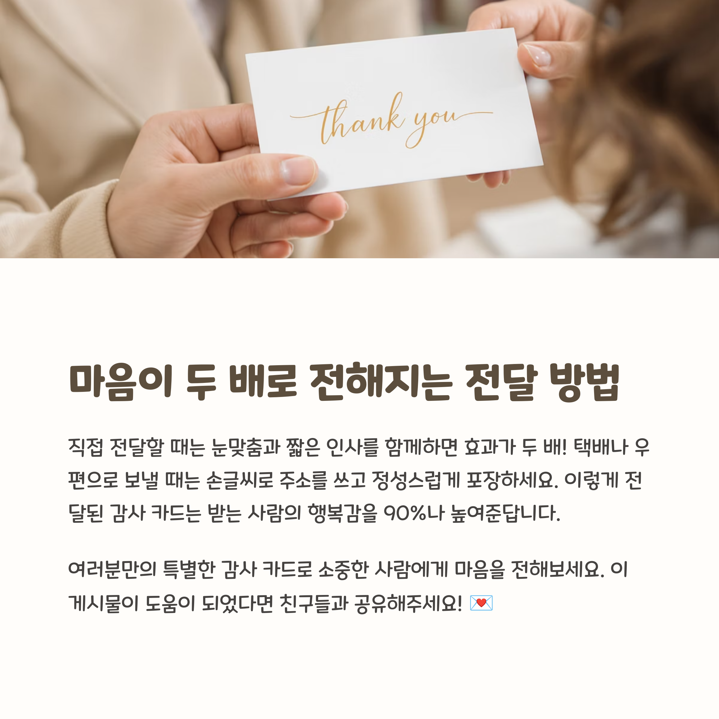 짧아도 진심만 담겨 있다면 그 자체로 완벽해요. - 감사 카드를 SNS로 대신해도 될까요?