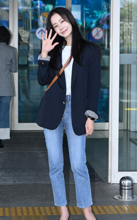 출국길에서도 자신만의 스타일을 잊지 않는 홍수현 씨, 정말 멋지죠?