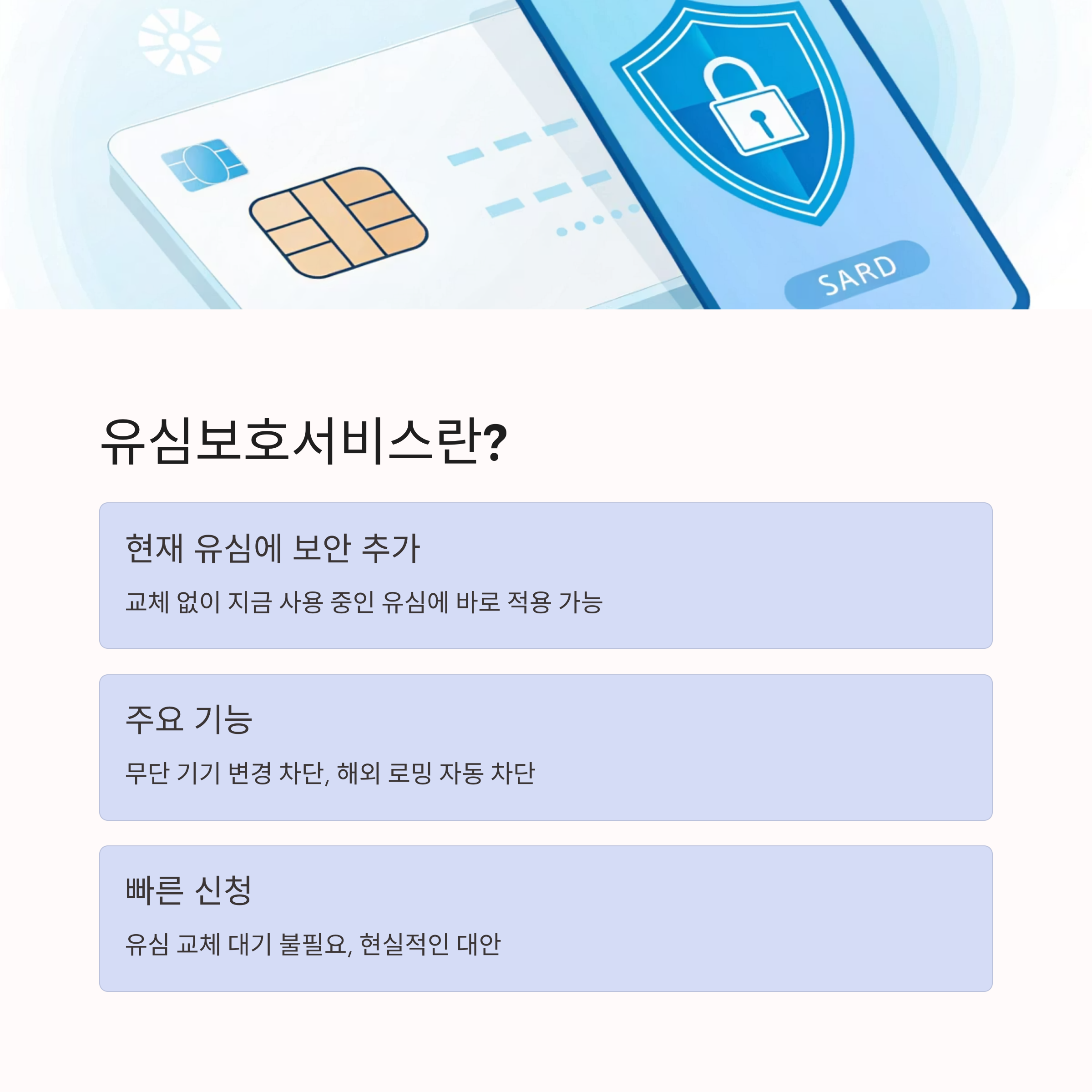 유심보호서비스는 현재 사용 중인 유심(USIM)에 보안 장치를 추가하는 서비스입니다.