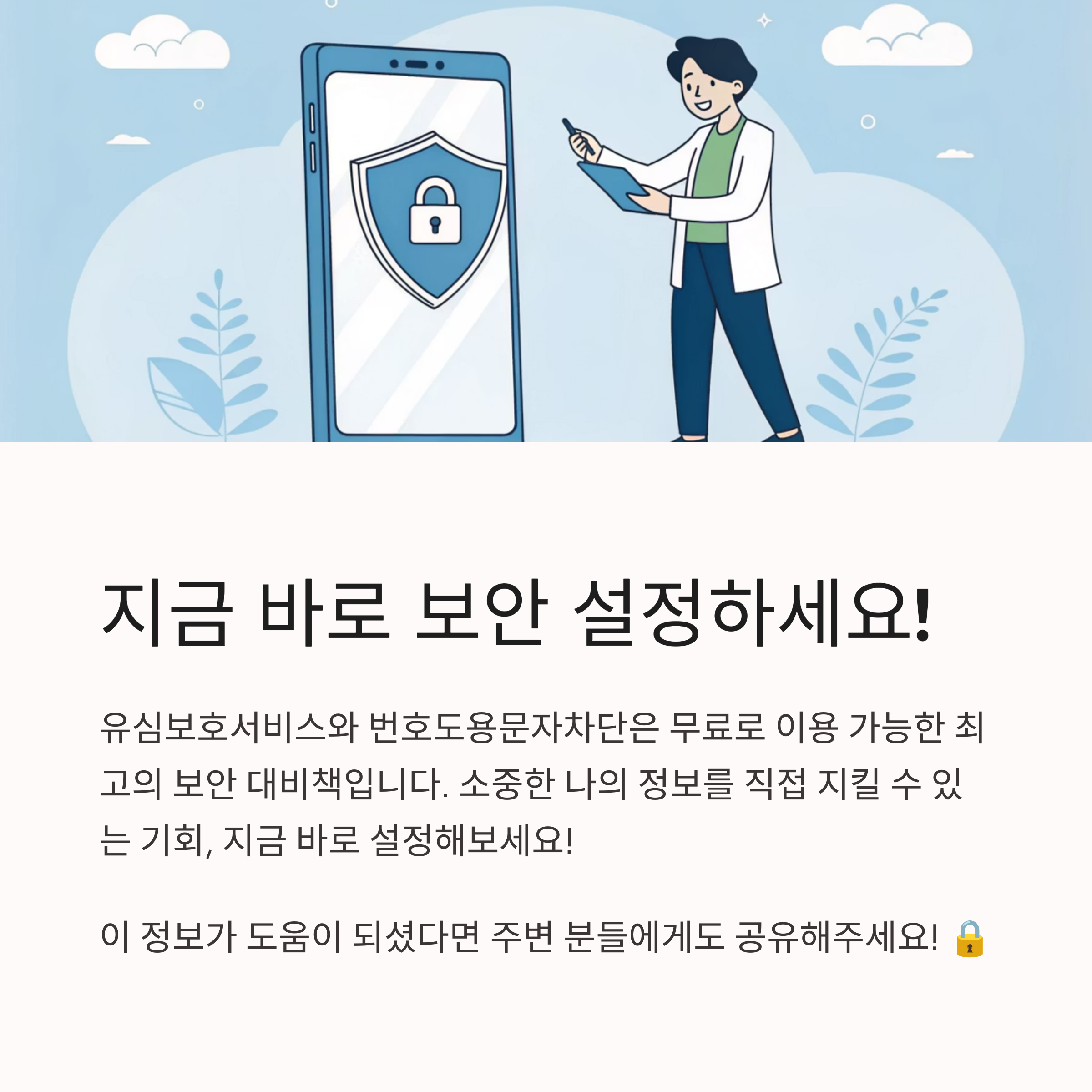 지금 당장 할 수 있는 최고의 보안 대비는 유심보호서비스 가입과 번호도용문자차단입니다.